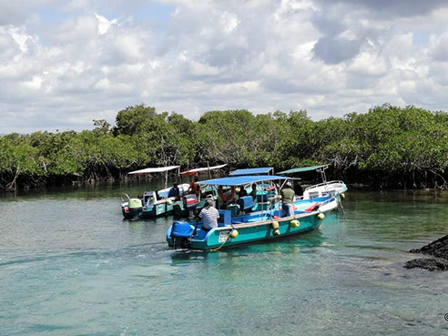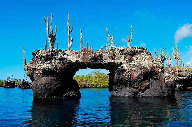 Con una caminata corta sobre los fragmentos de lava para poder observar las vegetación existente y el majestuoso paisaje de puentes, cuevas y túneles. Visitando también FINADOS que es un laberinto de mangle.