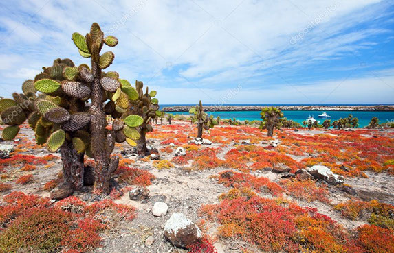 Santa Fe podría ser el volcán más antiguo de Galápagos con mezcla de lavas submarinas empujadas a la superficie por levantamiento y lavas que fueron depositadas posteriormente al levantamiento. En los grandes bosques de cactus encontrara a las iguanas terrestres únicas del mundo, que se diferencian del resto de iguanas de Galápagos por su color y tamaño.