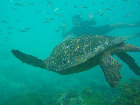 Por la tarde tendrán tiempo de relax en playa de arena negra para hacer snorkell o visitar la lobería cuyo acceso es por un sendero rocoso y arena, el atractivo principal es la presencia de iguanas marinas, tortugas marinas, finalizada las actividades retornan a Puerto Ayora.