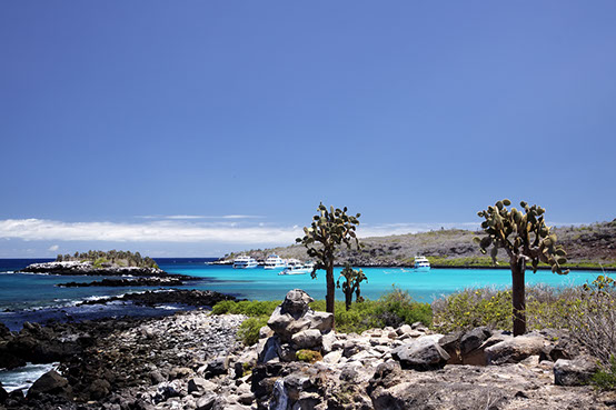 Santa Fe podría ser el volcán más antiguo de Galápagos con mezcla de lavas submarinas empujadas a la superficie por levantamiento y lavas que fueron depositadas posteriormente al levantamiento. En los grandes bosques de cactus encontrara a las iguanas terrestres únicas del mundo, que se diferencian del resto de iguanas de Galápagos por su color y tamaño.